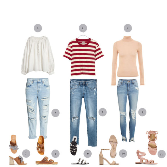 1. white blouse 2. crop stripes 3. turtleneck 4. $18 jeans 5. jeans under $40 6. jeans under $100 7. ribbon heel 8. birkenstock 9. embellished sandal 10. nude heel 11. wrap…