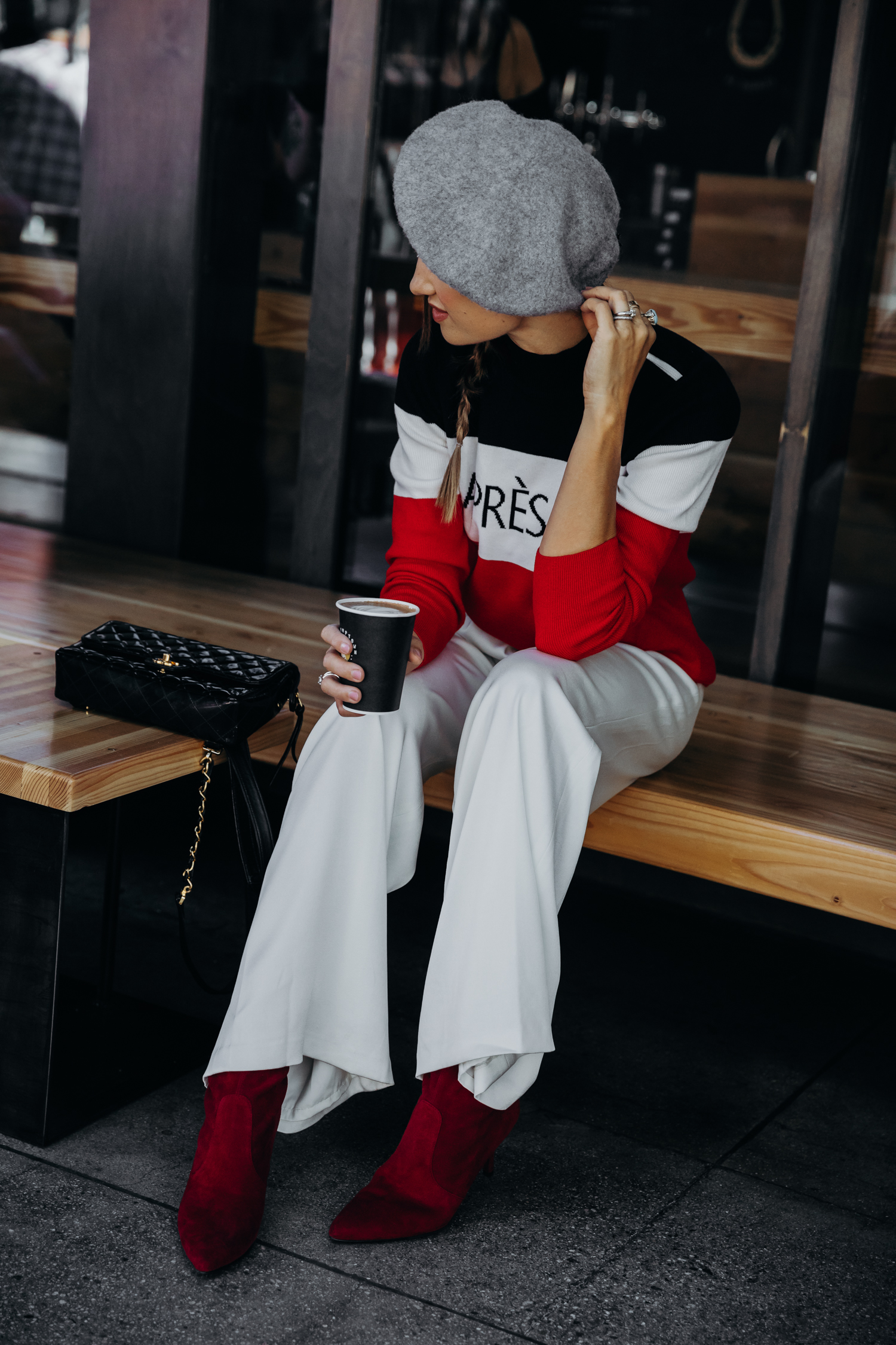Après Ski Sweater // white pants // boots // beret This will be our first ski vacation as a family. The kids have no idea what to expect so we’ve been…