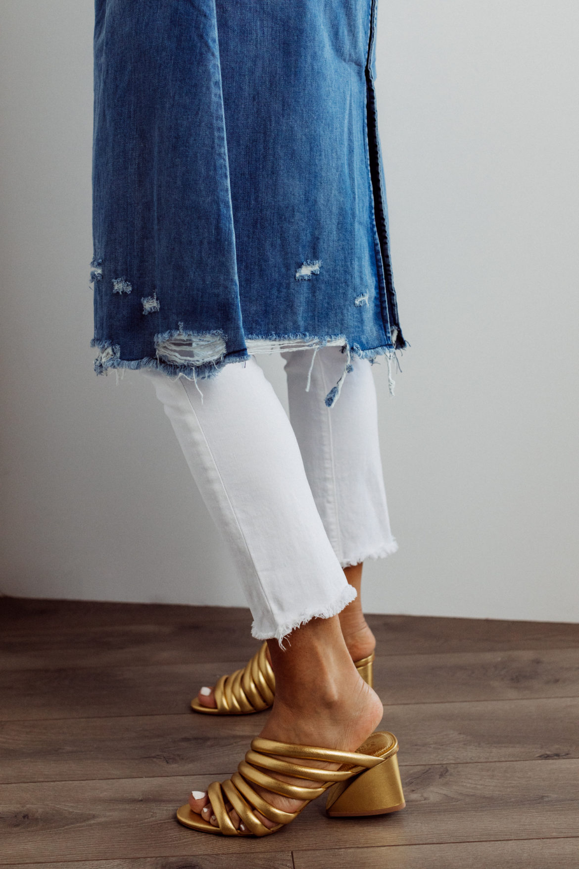 My husband said, after our last trip to NYC in June. I just saw this girl wearing the coolest trench. I asked him later what it looked like and he said it was distressed denim.
